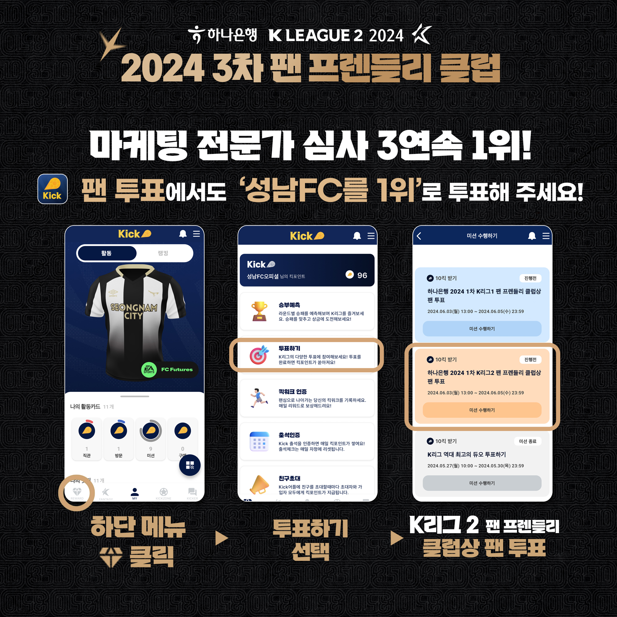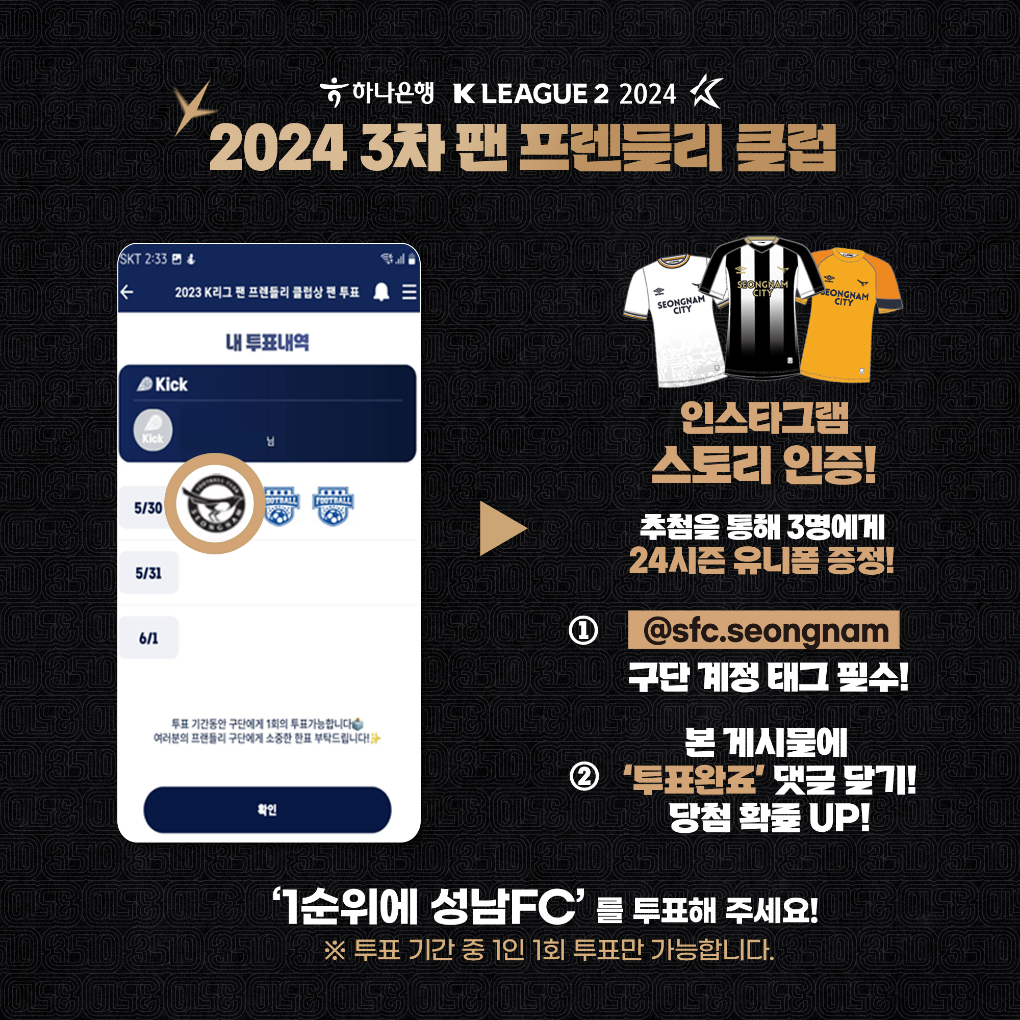1) 구단 인스타그램 스토리에 투표화면 인증(구단계정 @sfc.seongnam 태그 필수)