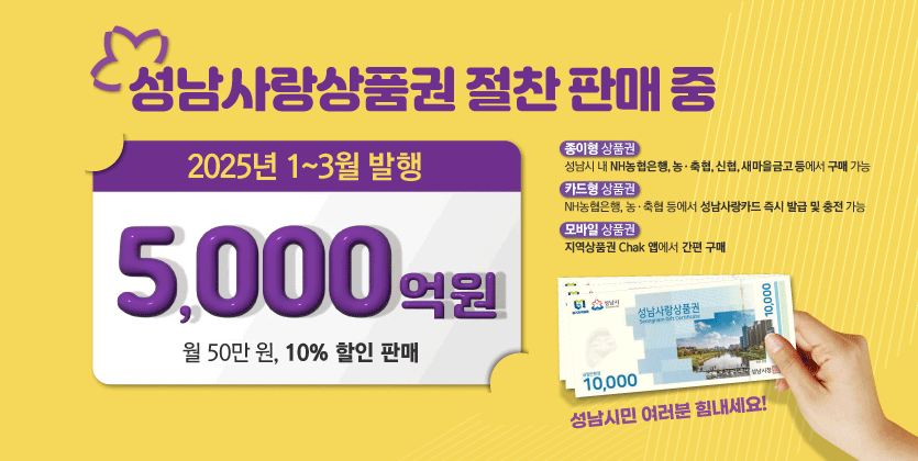 성남사랑상품권 10% 할인 판매를 3월에도 이어서 진행합니다.