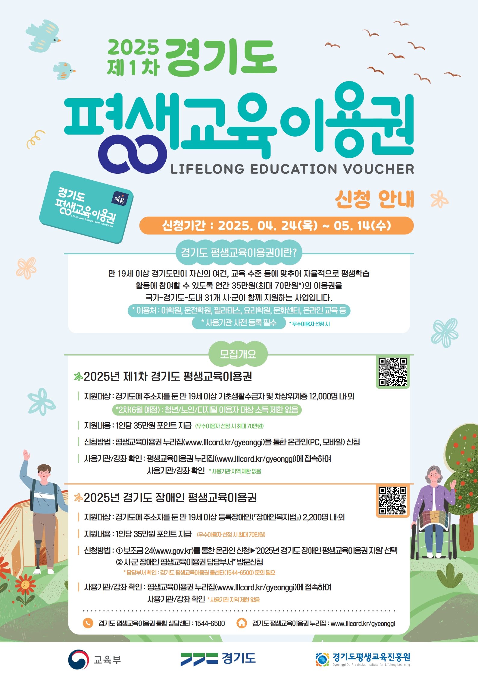 - 장애인 외 대상자: 경기도 평생교육이용권 누리집(www.lllcard.kr/gyeonggi)